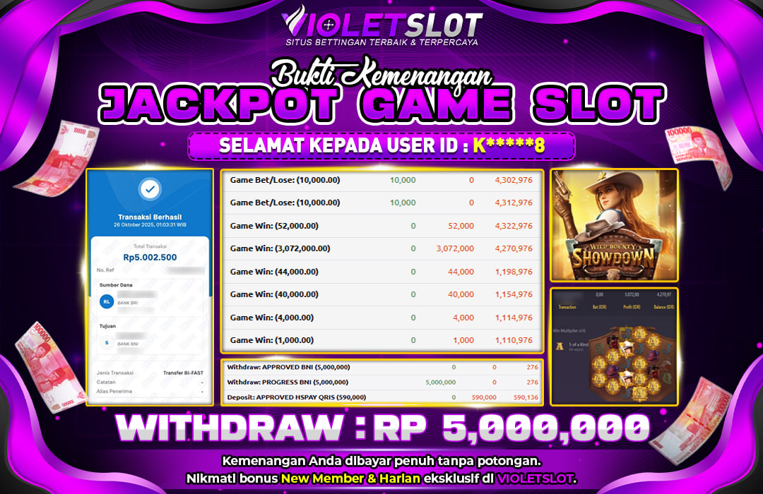 🎉 Selamat untuk USER ID: AG****K yang sukses membawa pulang Rp.Rp.6.006.000 dari permainan WILD BOUNTY SHOWDOWN! 💸