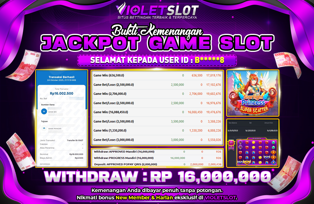 Selamat Kepada Member UNGUTOTO B******8 Telah Jackpot Di STARLIGHT PRINCES SUPER SCATER