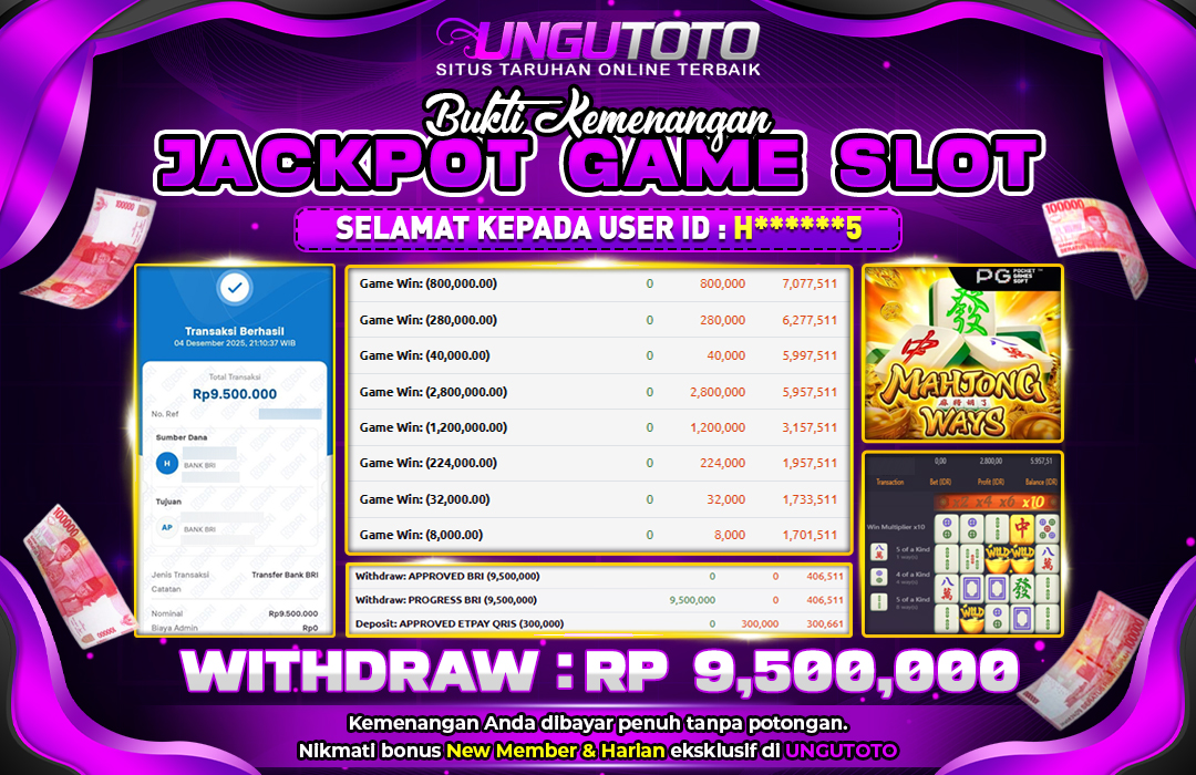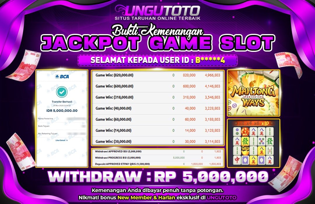 Bergabunglah dengan UNGUTOTO hanya dengan deposit minimal 5.000 rupiah. Kami menyediakan berbagai metode pembayaran seperti transfer bank, e-wallet, dan QRIS, sehingga Anda bisa melakukan transaksi dengan mudah. Proses penarikan juga sangat cepat, dengan minimal withdraw hanya 50.000 rupiah, tanpa biaya tambahan.