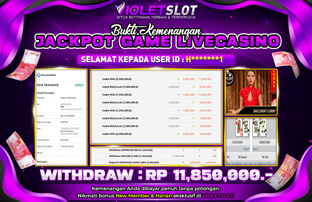 Selamat Kepada Member UNGUTOTO C⭑⭑�***��⭑AS Telah Jackpot Di LIVE CASINO - BACCARAT CLASSIC