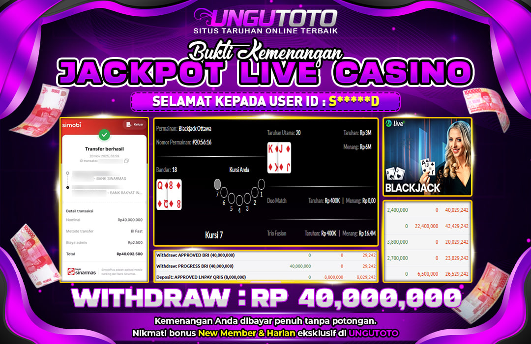 Selamat Kepada Member UNGUTOTO S⭑�***�⭑D Telah Jackpot Di BLACKJACK