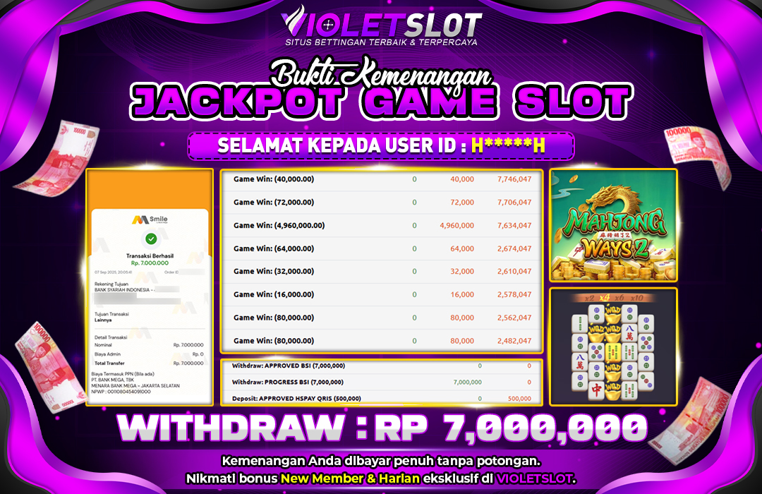Selamat Kepada Member UNGUTOTO H****H Telah Jackpot Di MAHJONG WAYS
