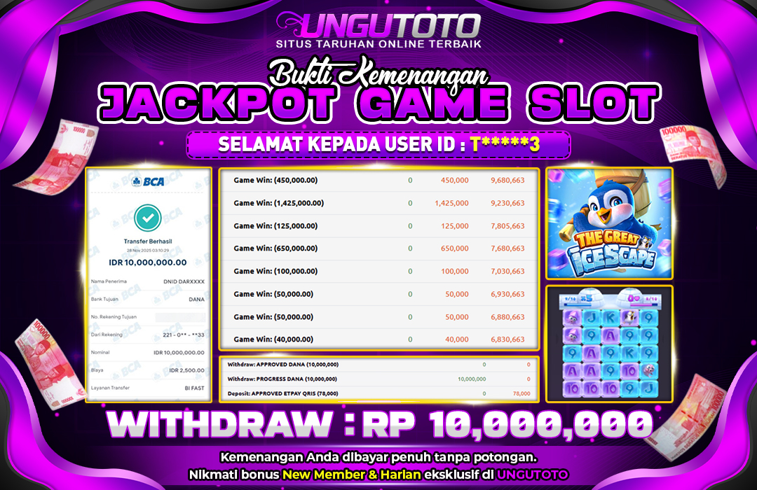 Selamat Kepada Member UNGUTOTO T****3 Telah Jackpot Di THE GREAT ICESCAPE