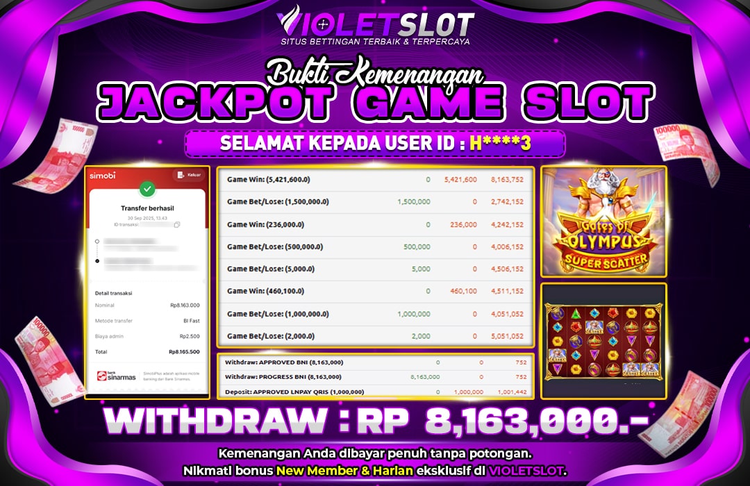 Selamat Kepada Member UNGUTOTO H****3 Telah Jackpot Di GATES OF OLYMPUS 1000