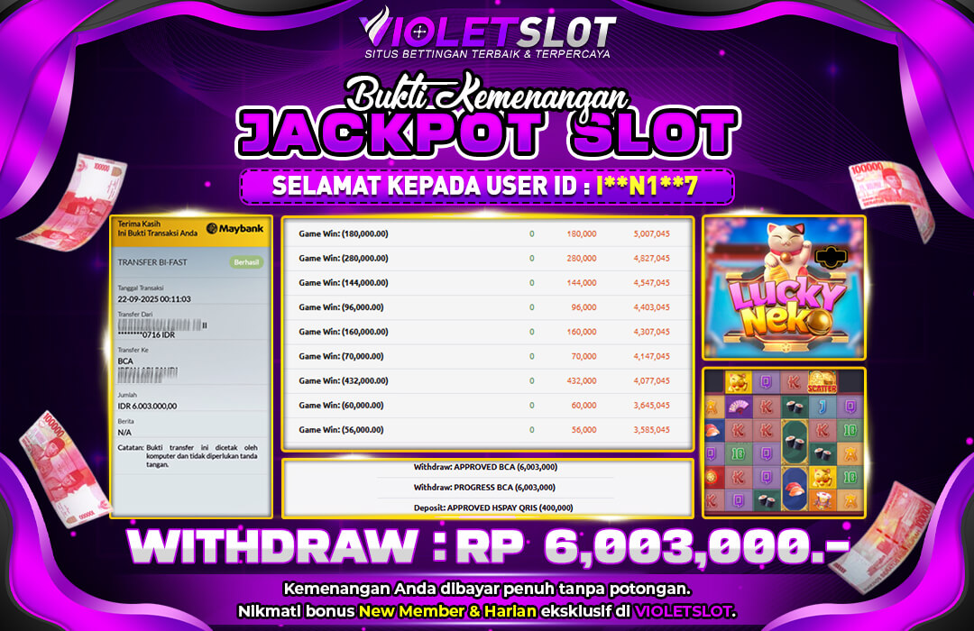 Selamat Kepada Member UNGUTOTO I******7 Telah Jackpot Di LUCY NEKO