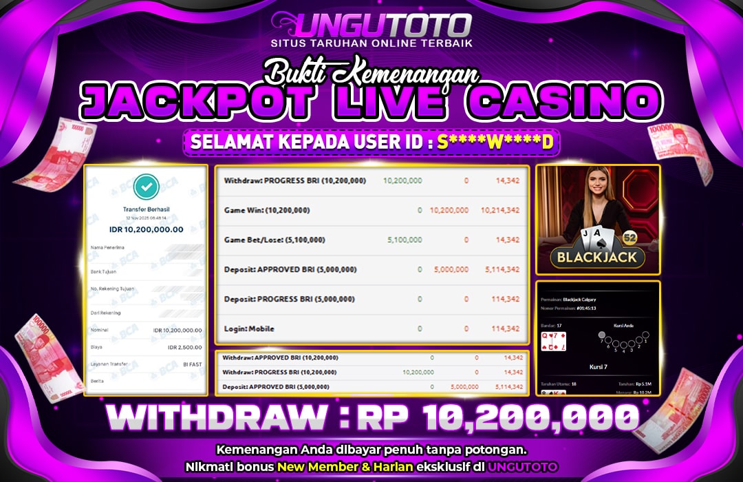 Selamat Kepada Member UNGUTOTO S*********D Telah Jackpot Di BLACKJACK