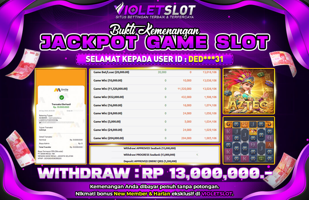 Selamat Kepada Member UNGUTOTO DED***31 Telah Jackpot Di AZTEC