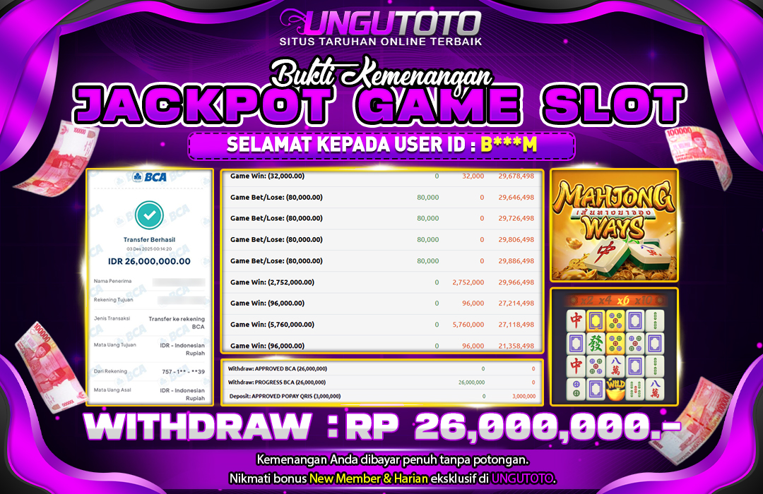 Selamat Kepada Member UNGUTOTO B****M Telah Jackpot Di MAHJONG WAYS
