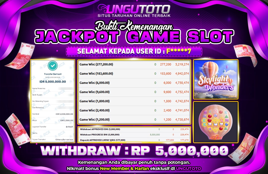 Selamat Kepada Member UNGUTOTO F*****7 Telah Jackpot Di SKYLIGHT WONDERS