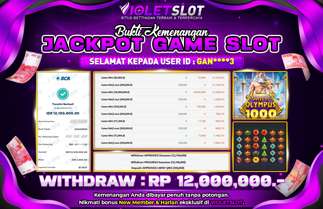 Selamat Kepada Member UNGUTOTO GAN****3 Telah Jackpot Di GATES OF OLYMPUS 1000