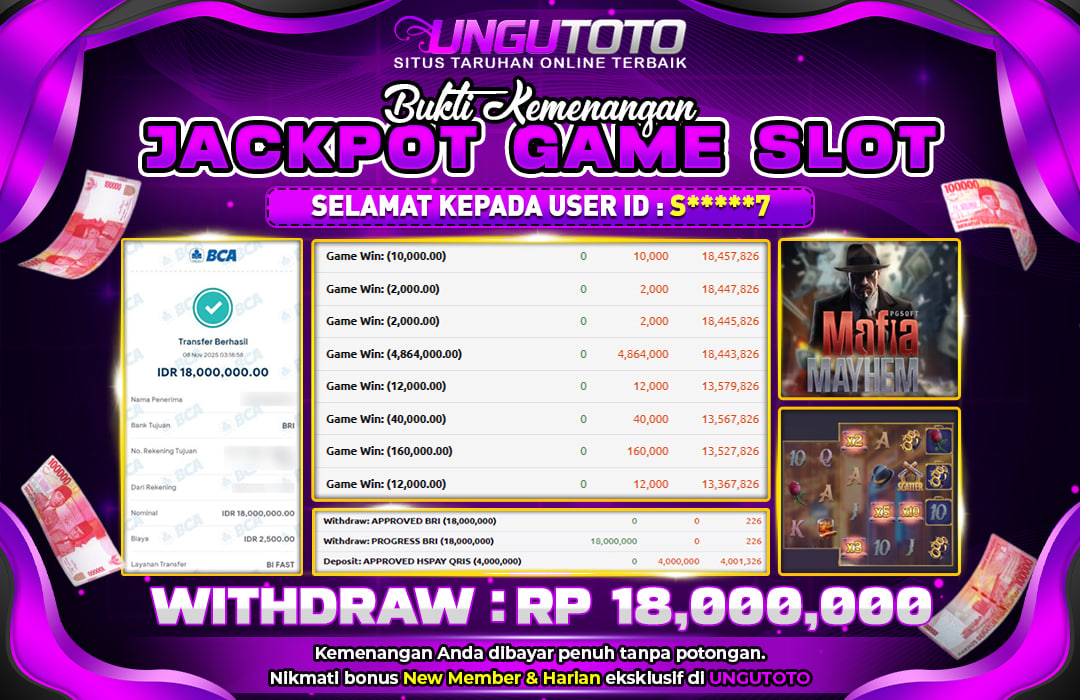 Selamat Kepada Member UNGUTOTO S⭑�***�⭑7 Telah Jackpot Di MAFIA MAYHEM