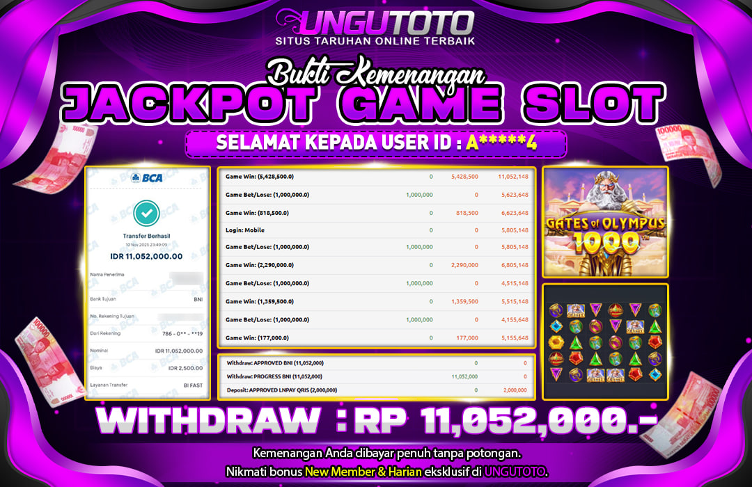 Bergabunglah dengan UNGUTOTO hanya dengan deposit minimal 5.000 rupiah. Kami menyediakan berbagai metode pembayaran seperti transfer bank, e-wallet, dan QRIS, sehingga Anda bisa melakukan transaksi dengan mudah. Proses penarikan juga sangat cepat, dengan minimal withdraw hanya 50.000 rupiah, tanpa biaya tambahan.