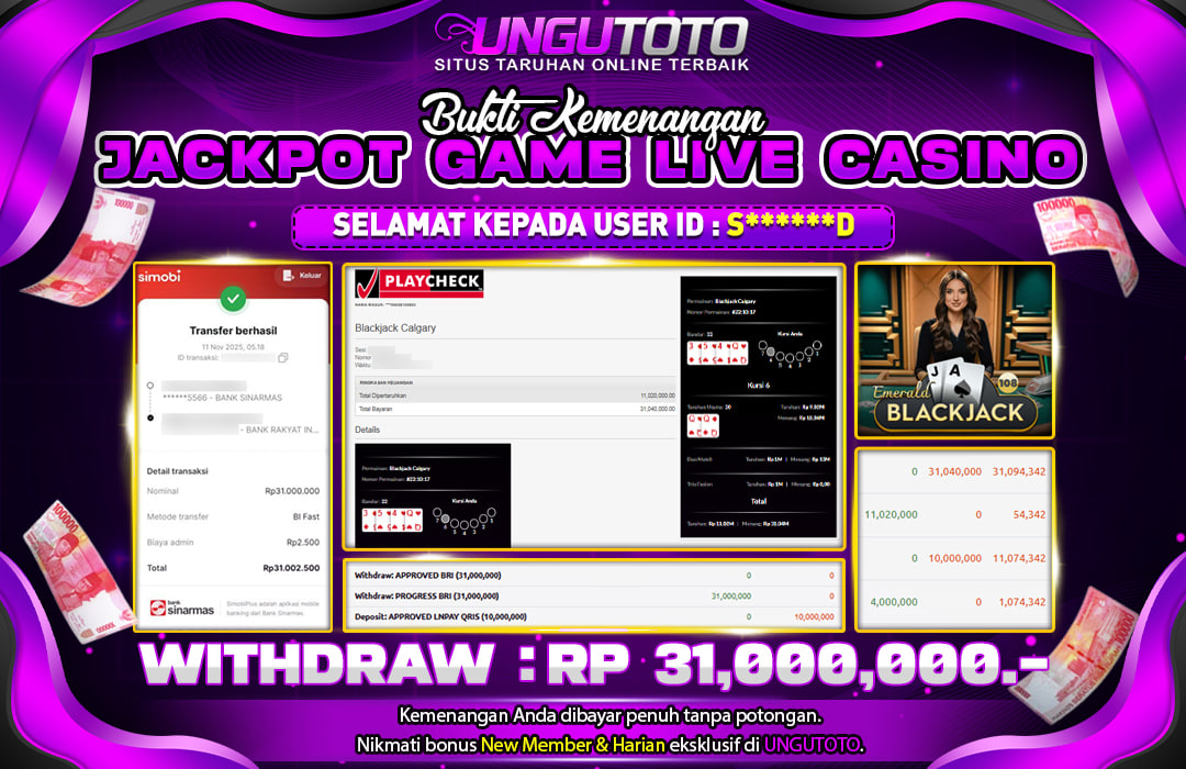 Bergabunglah dengan UNGUTOTO hanya dengan deposit minimal 5.000 rupiah. Kami menyediakan berbagai metode pembayaran seperti transfer bank, e-wallet, dan QRIS, sehingga Anda bisa melakukan transaksi dengan mudah. Proses penarikan juga sangat cepat, dengan minimal withdraw hanya 50.000 rupiah, tanpa biaya tambahan.