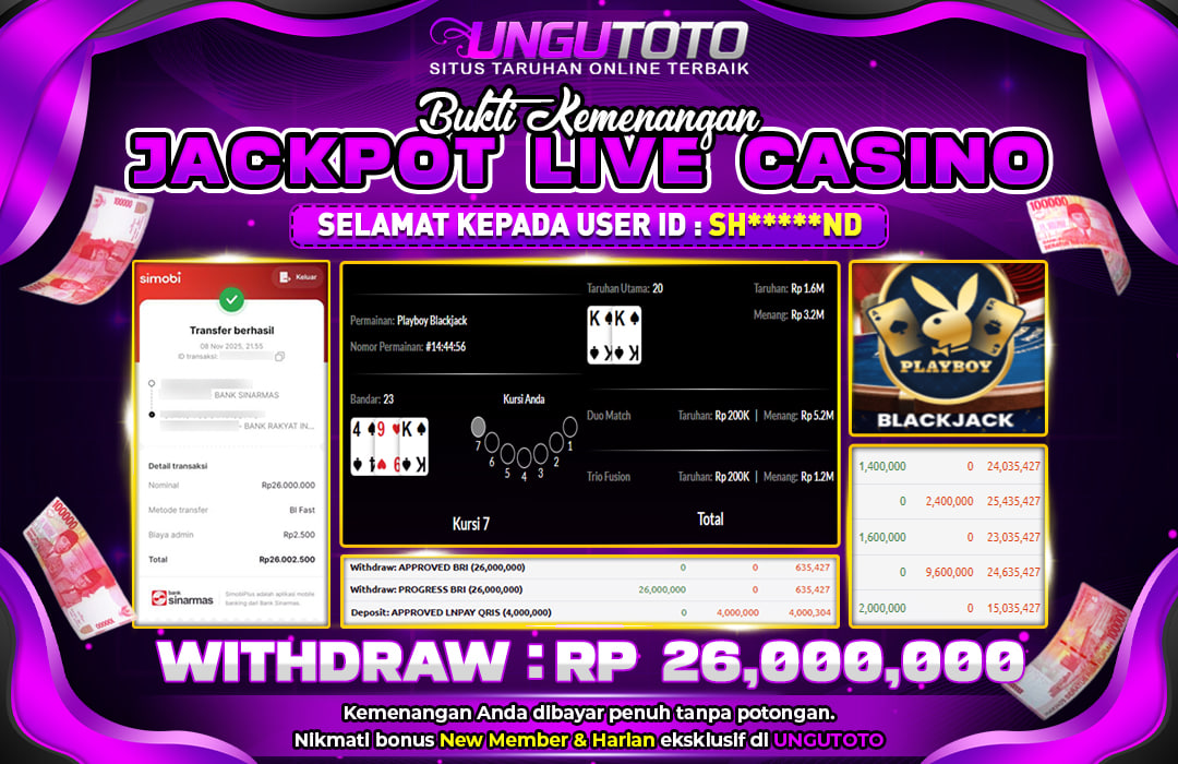 Bergabunglah dengan UNGUTOTO hanya dengan deposit minimal 5.000 rupiah. Kami menyediakan berbagai metode pembayaran seperti transfer bank, e-wallet, dan QRIS, sehingga Anda bisa melakukan transaksi dengan mudah. Proses penarikan juga sangat cepat, dengan minimal withdraw hanya 50.000 rupiah, tanpa biaya tambahan.
