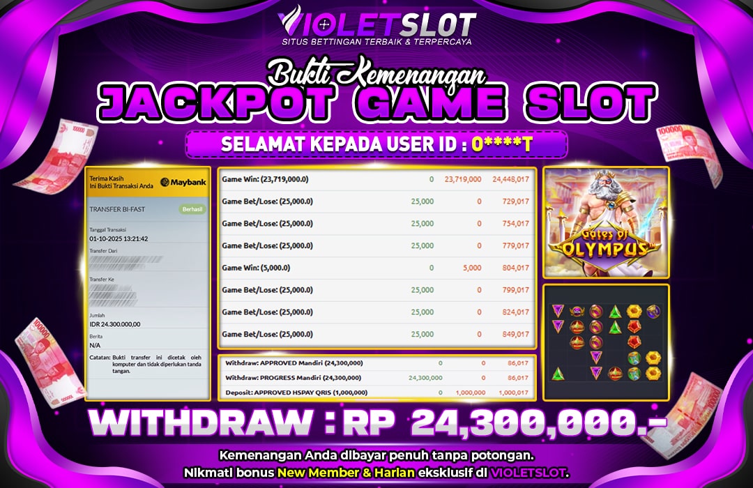 Selamat Kepada Member UNGUTOTO O****T Telah Jackpot Di GATES OF OLYMPUS