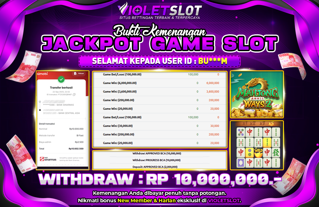 Selamat Kepada Member UNGUTOTO BU***M Telah Jackpot Di MAHJONG WAYS