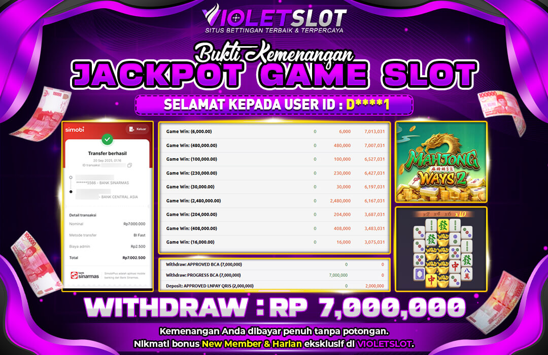 Selamat Kepada Member UNGUTOTO S*********7 Telah Jackpot Di MAHJONG WAYS
