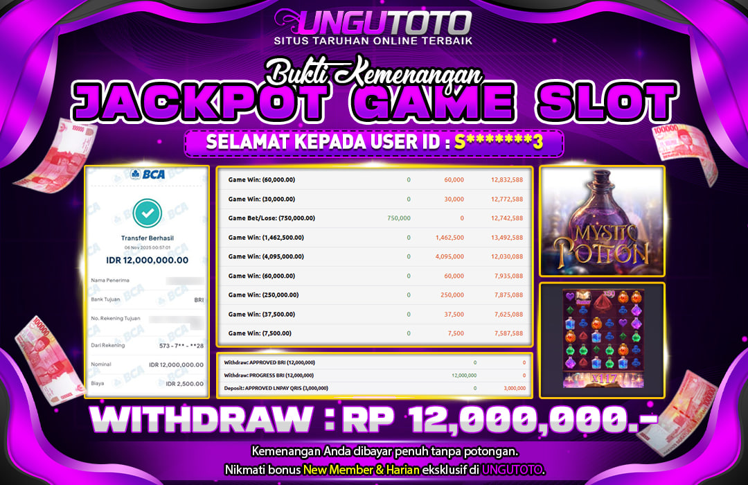 Selamat Kepada Member UNGUTOTO S⭑⭑�***��⭑3 Telah Jackpot Di MYSTIC POTION