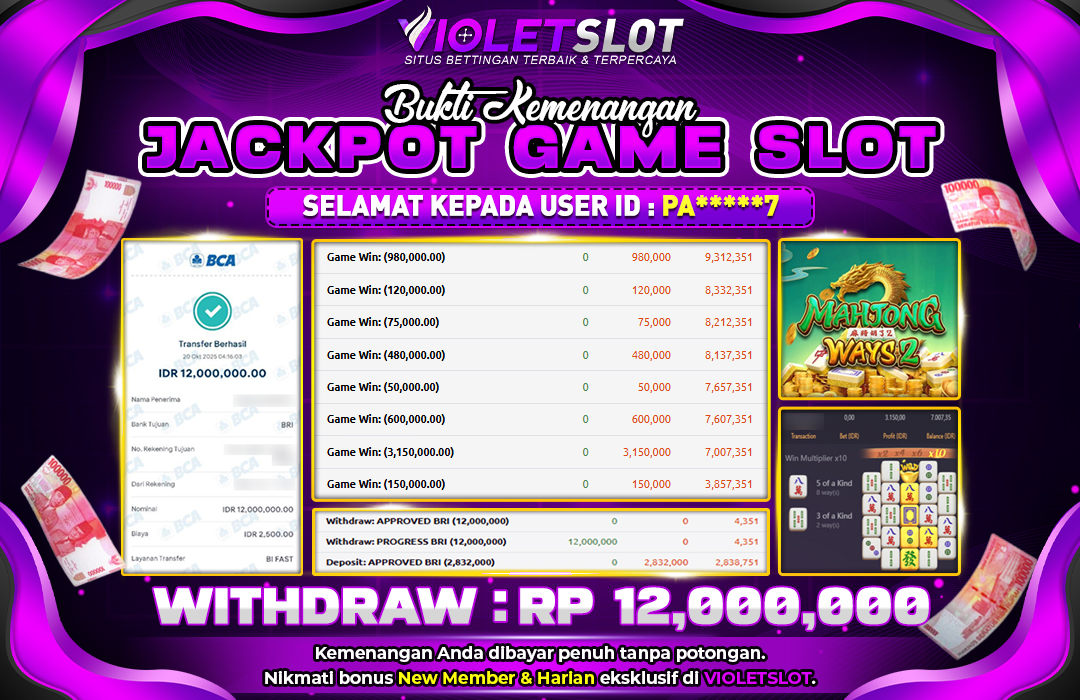 🎉 Selamat untuk USER ID: W****S yang sukses membawa pulang Rp.Rp.10.000.000 dari permainan MAHJONG WAYS 2! 💸