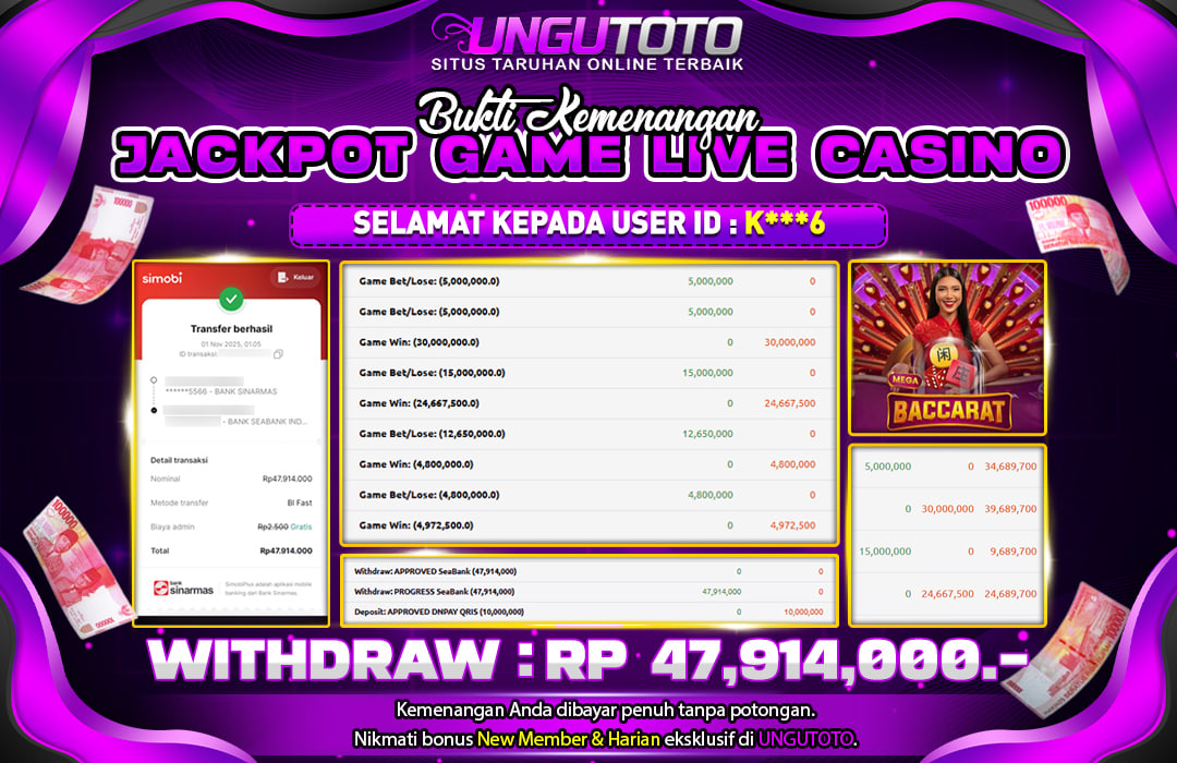 Bergabunglah dengan UNGUTOTO hanya dengan deposit minimal 5.000 rupiah. Kami menyediakan berbagai metode pembayaran seperti transfer bank, e-wallet, dan QRIS, sehingga Anda bisa melakukan transaksi dengan mudah. Proses penarikan juga sangat cepat, dengan minimal withdraw hanya 50.000 rupiah, tanpa biaya tambahan.