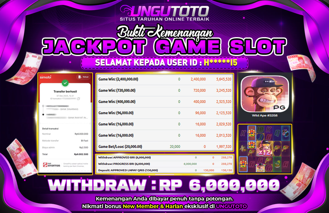 Selamat Kepada Member UNGUTOTO H⭑⭑�***��⭑I5 Telah Jackpot Di WILD APE