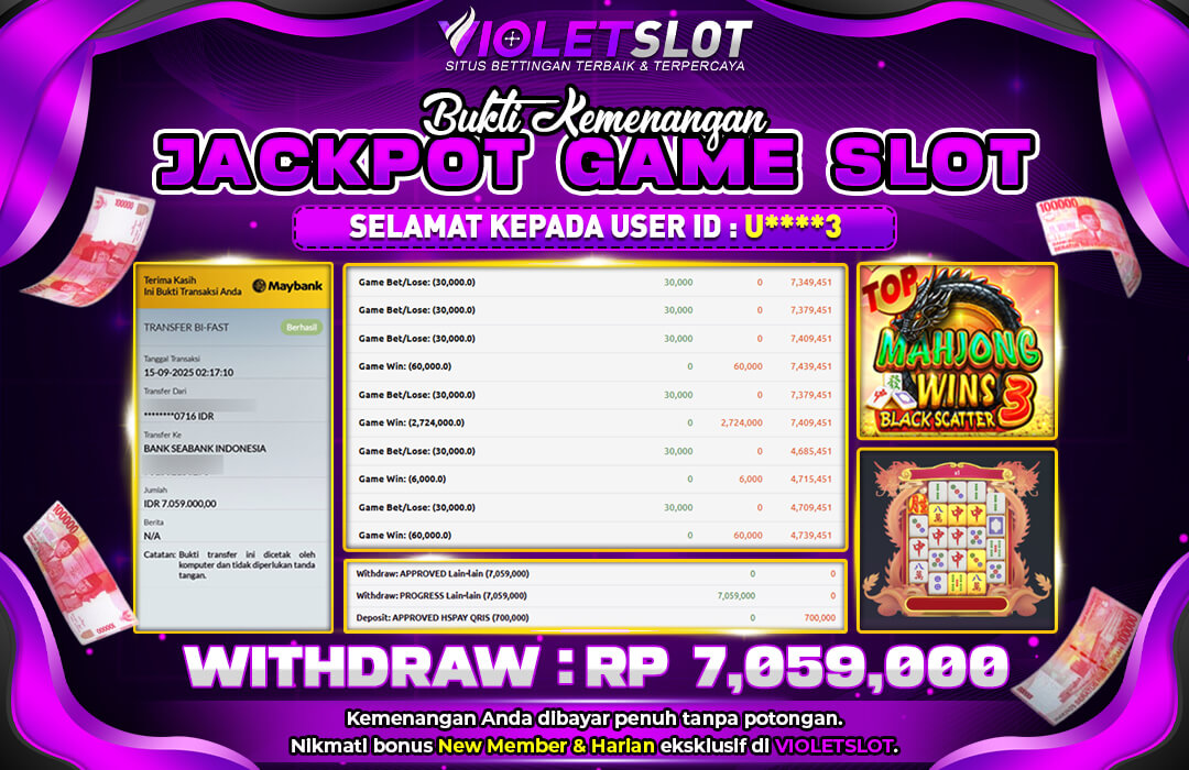 Selamat Kepada Member UNGUTOTO U*****3 Telah Jackpot Di MAHJONG WINS 3