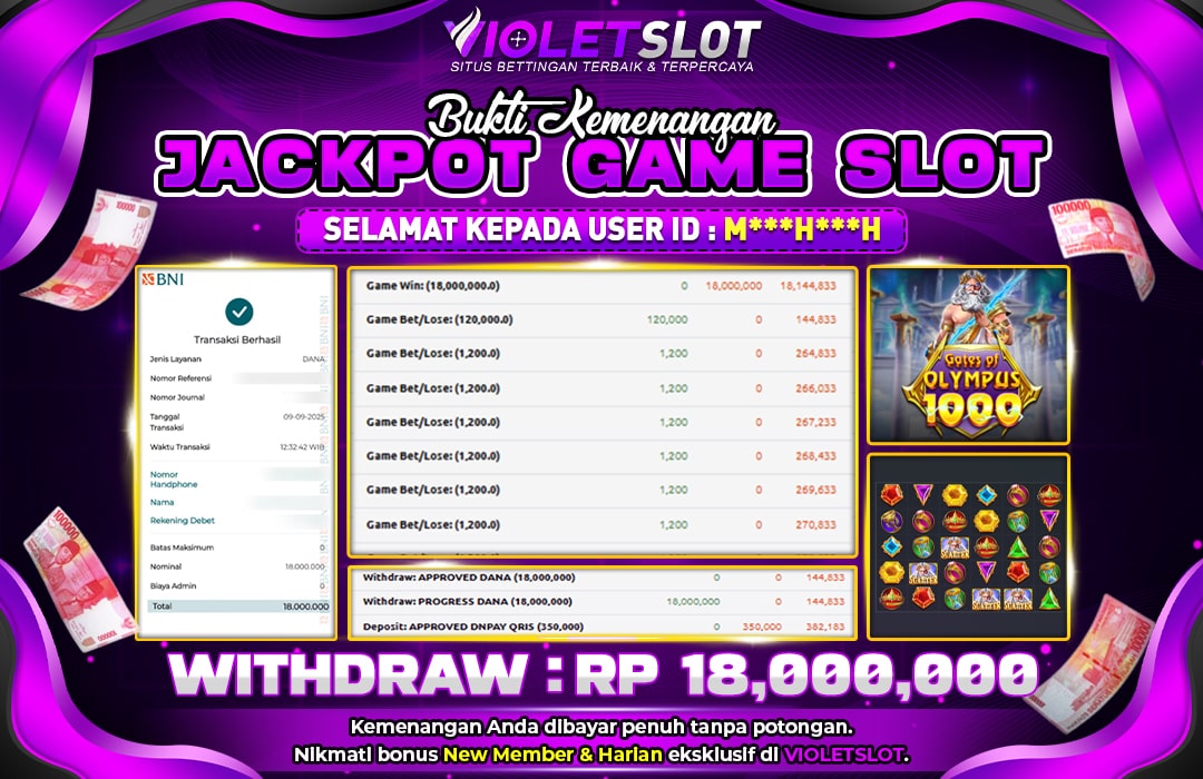 Selamat Kepada Member UNGUTOTO M*******H Telah Jackpot Di GATES OF OLYMPUS 1000