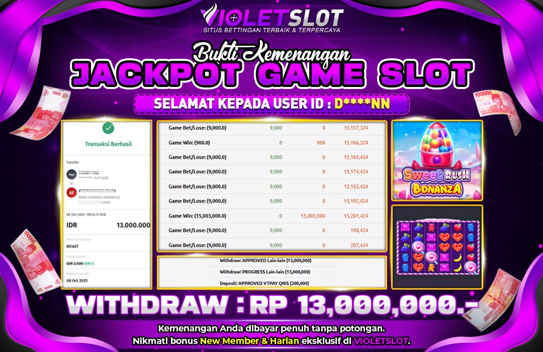 Selamat Kepada Member UNGUTOTO D⭑⭑***⭑NN Telah Jackpot Di SWEET RUSH BONANZA