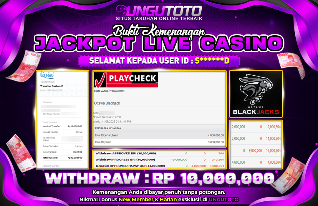 Selamat Kepada Member UNGUTOTO S⭑⭑�***�⭑⭑D Telah Jackpot Di OTTAWA BLACK JACKS