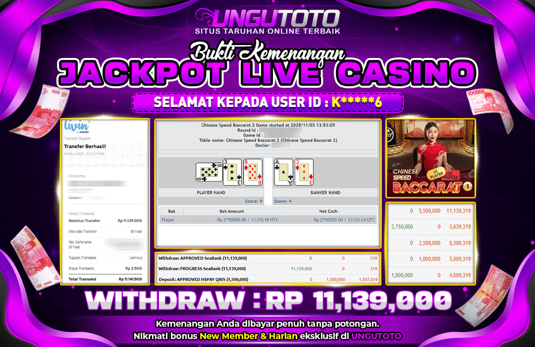 Ya cuma di UNGUTOTO, tempat paling aman dan terpercaya buat para pecinta SPEED BACCARAT. Mulai dari layanan responsif, sistem yang fair, sampai pencairan yang tuntas tanpa drama.