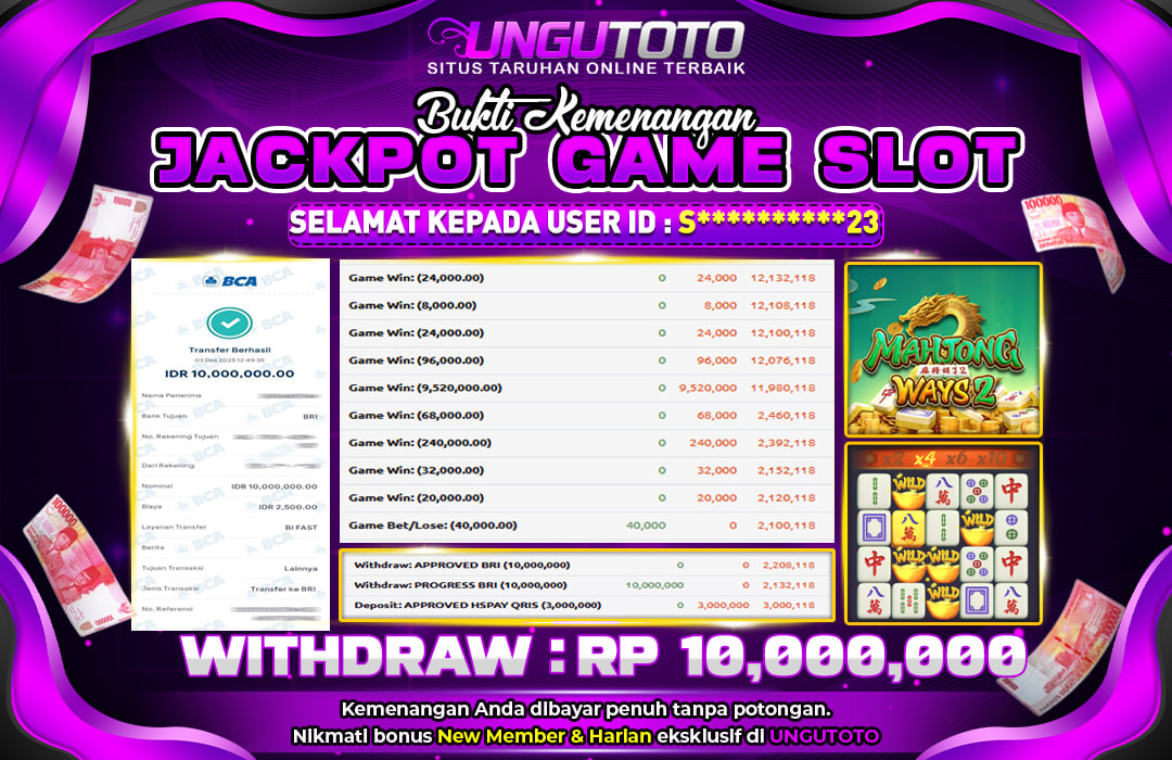 Selamat Kepada Member UNGUTOTO L******I Telah Jackpot Di MAHJONG WINS 3