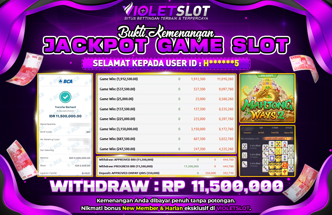 Selamat Kepada Member UNGUTOTO H⭑⭑�***�⭑⭑5 Telah Jackpot Di MAHJONG WAYS 2