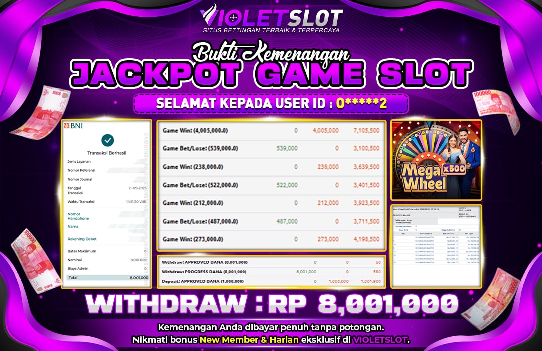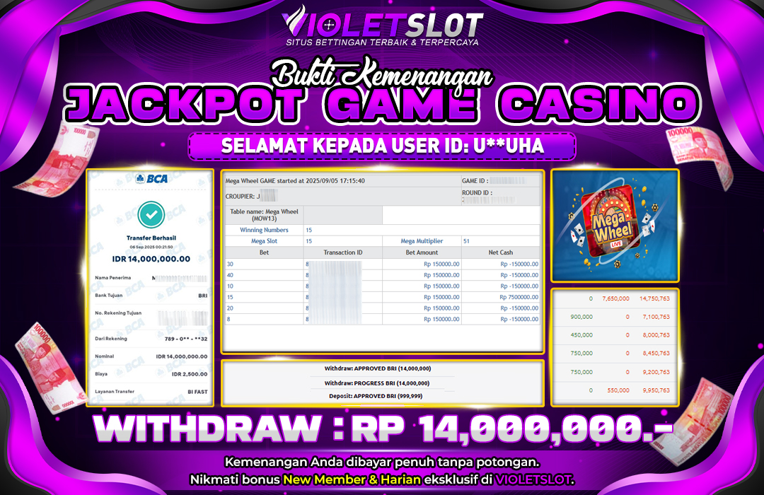 Selamat Kepada Member UNGUTOTO O*****2 Telah Jackpot Di MEGA WHEEL