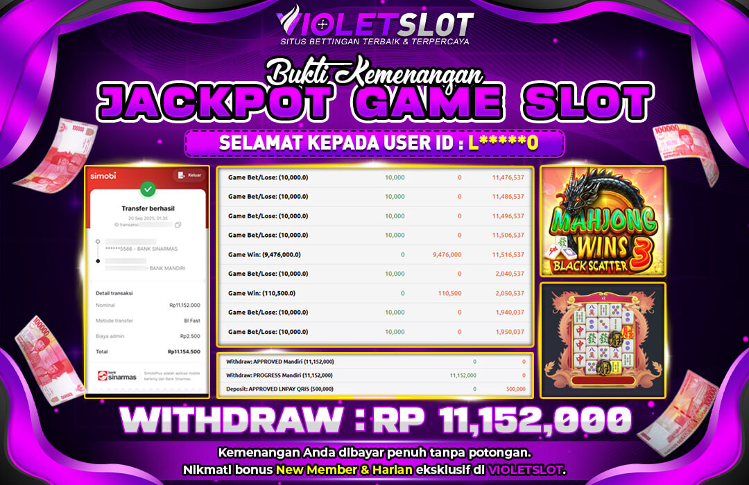 Selamat Kepada Member UNGUTOTO L****0 Telah Jackpot Di MAHJONG WINS 3