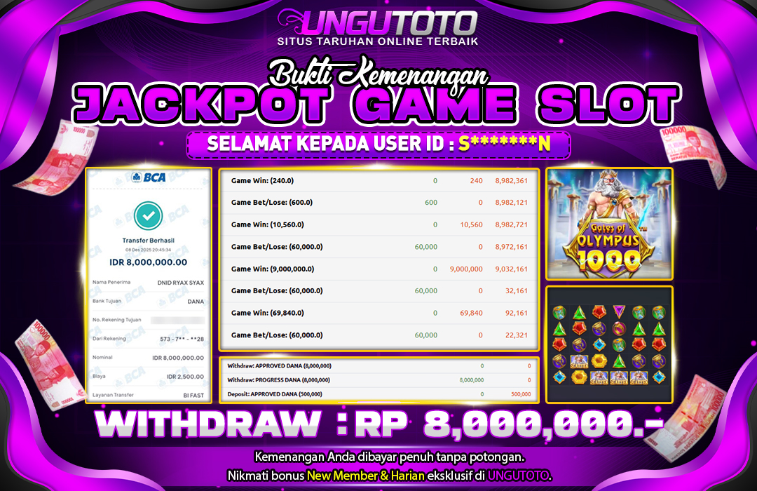 Bergabunglah dengan UNGUTOTO hanya dengan deposit minimal 5.000 rupiah. Kami menyediakan berbagai metode pembayaran seperti transfer bank, e-wallet, dan QRIS, sehingga Anda bisa melakukan transaksi dengan mudah. Proses penarikan juga sangat cepat, dengan minimal withdraw hanya 50.000 rupiah, tanpa biaya tambahan.