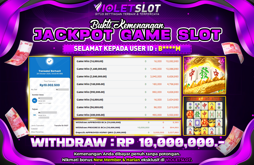 Selamat Kepada Member UNGUTOTO B⭑⭑�***�⭑⭑M Telah Jackpot Di GAME SLOT MAHJONG WAYS