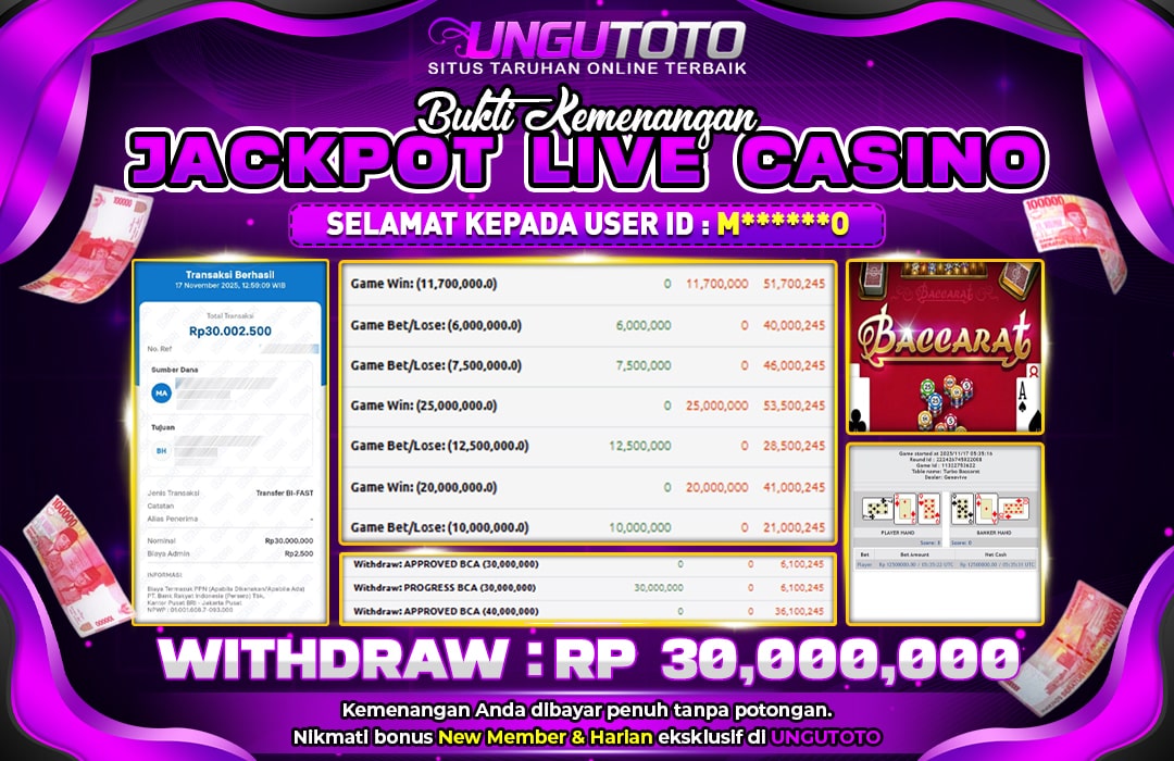 Selamat Kepada Member UNGUTOTO M******0 Telah Jackpot Di BACCARAT