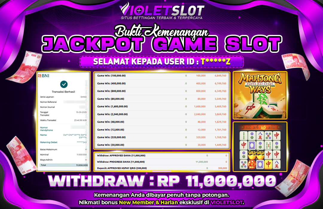 Selamat Kepada Member UNGUTOTO T****Z Telah Jackpot Di MAHJONG WAYS