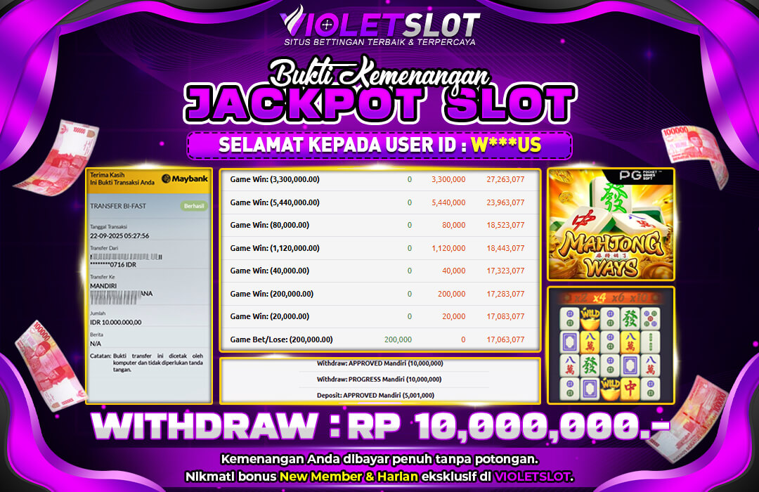Selamat Kepada Member UNGUTOTO B⭑⭑⭑***⭑⭑28 Telah Jackpot Di MAHJONG WAYS