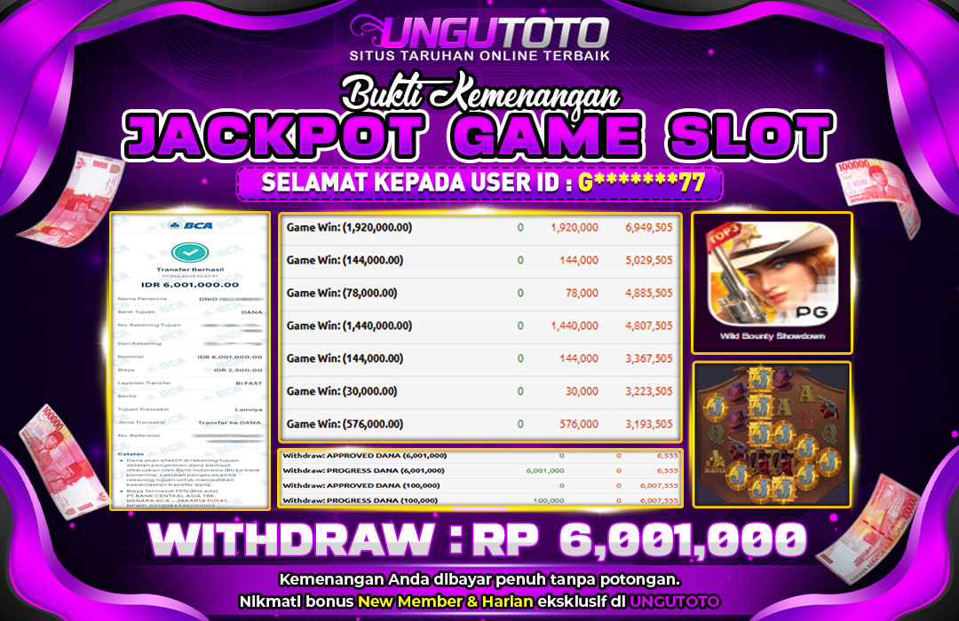 Bergabunglah dengan UNGUTOTO hanya dengan deposit minimal 5.000 rupiah. Kami menyediakan berbagai metode pembayaran seperti transfer bank, e-wallet, dan QRIS, sehingga Anda bisa melakukan transaksi dengan mudah. Proses penarikan juga sangat cepat, dengan minimal withdraw hanya 50.000 rupiah, tanpa biaya tambahan.