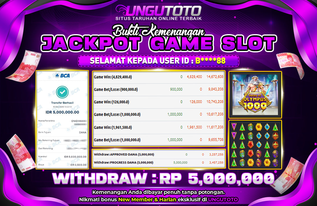 Selamat Kepada Member UNGUTOTO B⭑⭑***⭑88 Telah Jackpot Di GATES OF OLYMPUS 1000