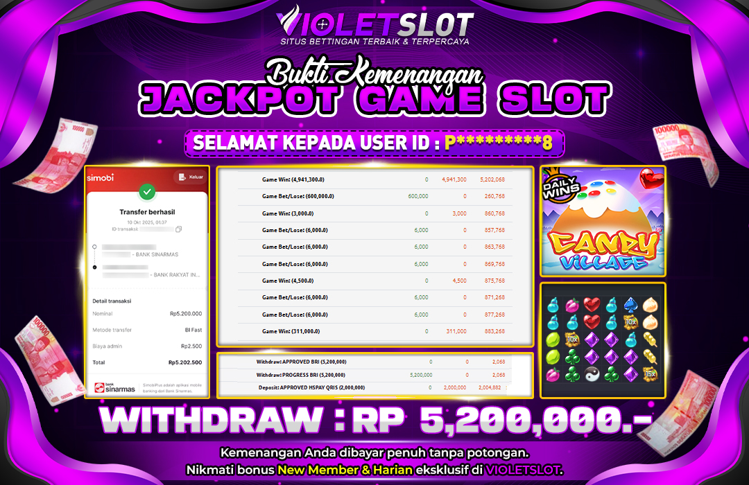 Selamat Kepada Member UNGUTOTO P⭑⭑⭑⭑�***��⭑⭑⭑8 Telah Jackpot Di CANDY VILLAGE