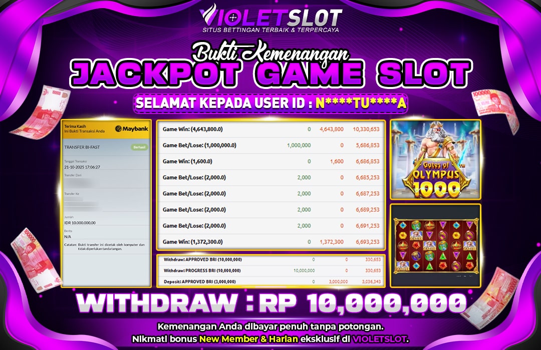 Selamat Kepada Member UNGUTOTO N**********A Telah Jackpot Di GATES OF OLYMPUS 1000
