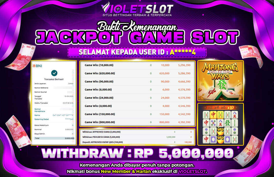 Selamat Kepada Member UNGUTOTO A******4 Telah Jackpot Di MAHJONG WAYS