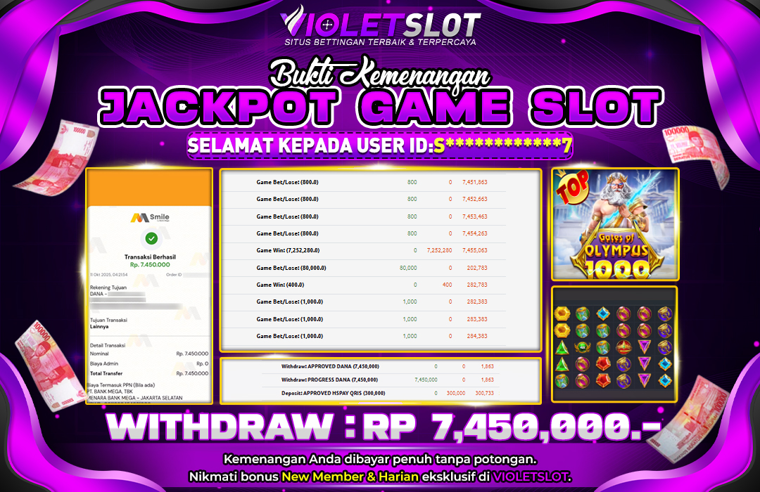 Selamat Kepada Member UNGUTOTO S⭑⭑⭑⭑⭑�***�⭑⭑⭑⭑⭑7 Telah Jackpot Di GATES OF OLYMPUS 1000
