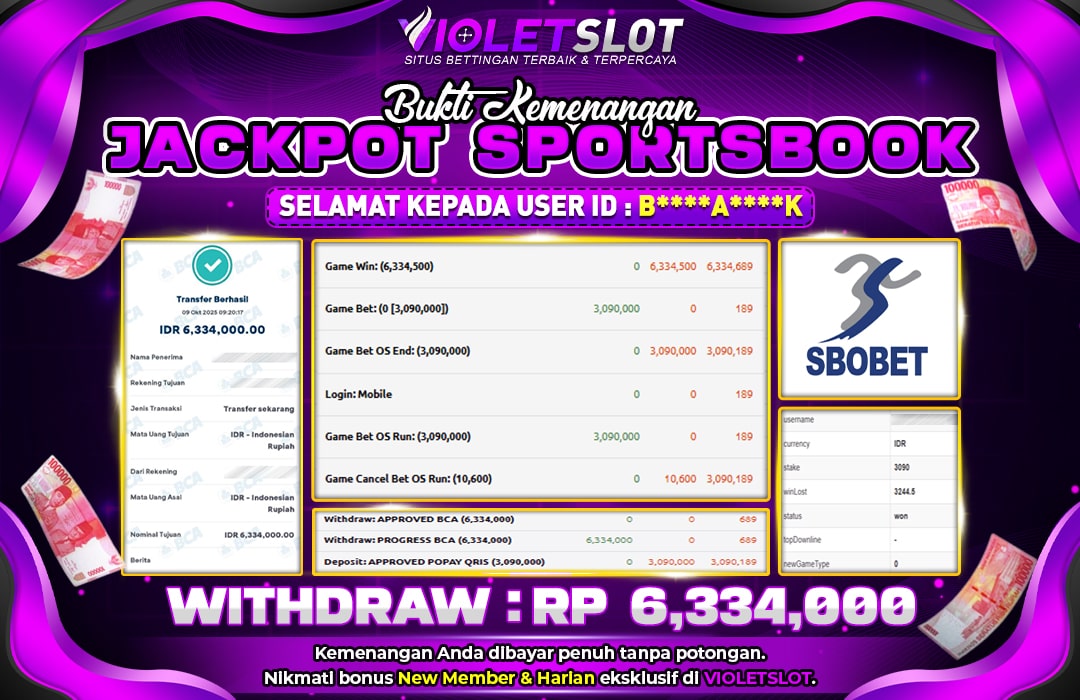 Selamat Kepada Member UNGUTOTO B*********K Telah Jackpot Di SPORTSBOOK