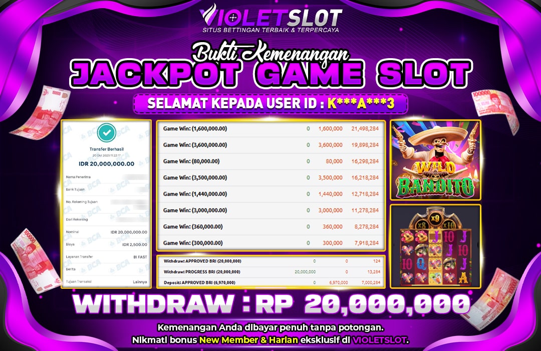 Selamat Kepada Member UNGUTOTO K*******3 Telah Jackpot Di WILD BANDITO