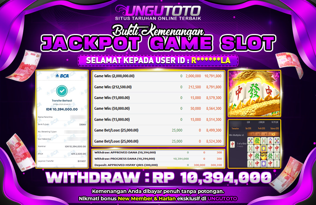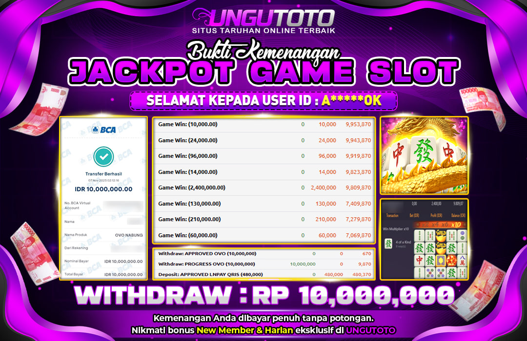 Bergabunglah dengan UNGUTOTO hanya dengan deposit minimal 5.000 rupiah. Kami menyediakan berbagai metode pembayaran seperti transfer bank, e-wallet, dan QRIS, sehingga Anda bisa melakukan transaksi dengan mudah. Proses penarikan juga sangat cepat, dengan minimal withdraw hanya 50.000 rupiah, tanpa biaya tambahan.