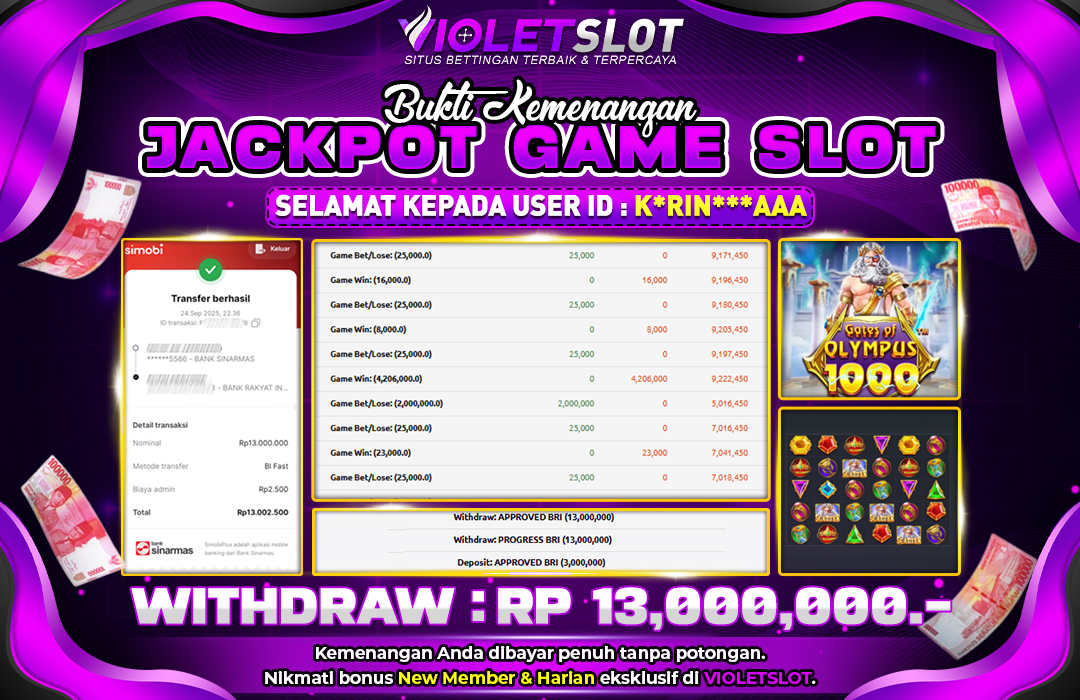 Selamat Kepada Member UNGUTOTO K*RIN***AAA Telah Jackpot Di GATES OF OLYMPUS 1000