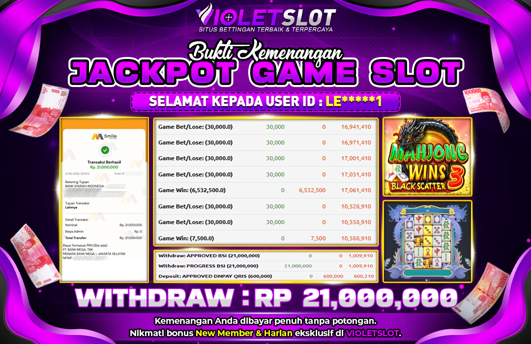 Selamat Kepada Member UNGUTOTO H*****6 Telah Jackpot Di MAHJONG WAYS